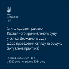 До уваги новий тематичний огляд судової практики Касаційного кримінального суду у складі Верховного Суду, у якому зібрано ключові висновки щодо застосування норм права про проведення обшуку та огляду (рішення, внесені до ЄДРСР, з 2020 року по травень 2024 року) – https://supreme.court.gov.ua/userfiles/media/new_folder_for_uploads/supreme/ogliady/Oglyad_KKS_oglyad_obshyk.pdf