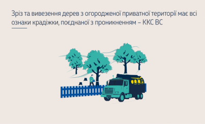 Також ККС ВС зазначив, що незаконна порубка з корисливою метою дерев і чагарників поза межами лісового фонду України (на сільськогосподарських угіддях, присадибних, дачних, садових чи інших земельних ділянках) утворює склад кримінального правопорушення проти власності або самоправства.