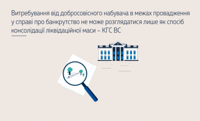 Направляючи справу на новий розгляд до суду першої інстанції, КГС ВС зазначив, що легітимною метою в разі витребування арбітражним керуючим (ліквідатором) нерухомого майна від набувача такого майна на підставі ч. 1 ст. 388 ЦК України можна вважати судовий нагляд у процедурах банкрутства та нагляд за дотриманням інтересів кредиторів щодо збереження об’єктів ліквідаційної маси, а також інтересів боржника щодо задоволення грошових вимог кредиторів.