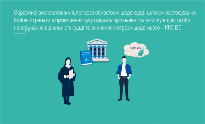 За обставинами провадження засуджений у приміщенні місцевого суду вчинив погрозу вбивством щодо судді цього суду у зв’язку з його діяльністю, пов’язаною зі здійсненням правосуддя – розглядом скарги, де він був потерпілим. Окрім того, засуджений втручався в діяльність судді з метою перешкодити виконанню ним службових обов’язків.