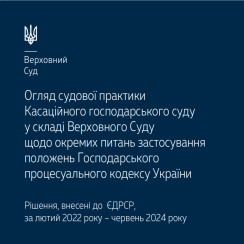 Верховний Суд опублікував оновлений огляд судової практики Касаційного господарського суду у складі Верховного Суду щодо окремих питань застосування положень ГПК України (за лютий 2022 року – червень 2024 року): https://supreme.court.gov.ua/userfiles/media/new_folder_for_uploads/supreme/kgs_2024/Oglyad_KGS_GPK_02_2022_06_2024.pdf.