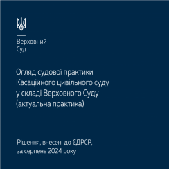 До уваги – черговий щомісячний огляд актуальної судової практики Касаційного цивільного суду у складі Верховного Суду за серпень 2024 року – https://supreme.court.gov.ua/userfiles/media/new_folder_for_uploads/supreme/ogliady/Oglyad_KCS_08_2024.pdf.