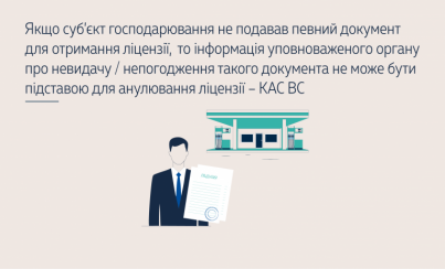 Якщо суб’єкт господарювання взагалі не подавав певного документа для отримання ліцензії, то інформація уповноваженого органу про невидачу / непогодження такого документа не може бути підставою для анулювання ліцензії відповідно до абз. 8 ч. 52 ст. 15 Закону.