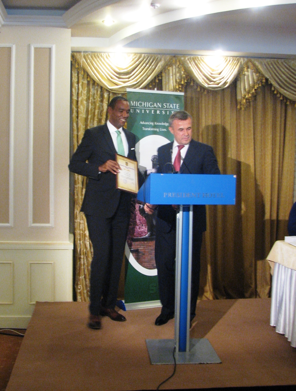 За сприяння розвитку професіоналізму судових адміністраторів та впровадженню міжнародних стандартів діяльності судів в Україні по завершенню урочистостей з нагоди вручення сертифікатів навчальної програми з питань судового адміністрування Зеновій Холоднюк вручив Подяки ДСА України керівнику Проекту "Справедливе правосуддя" Девіду Вону та викладачам Університету штату Мічиган.