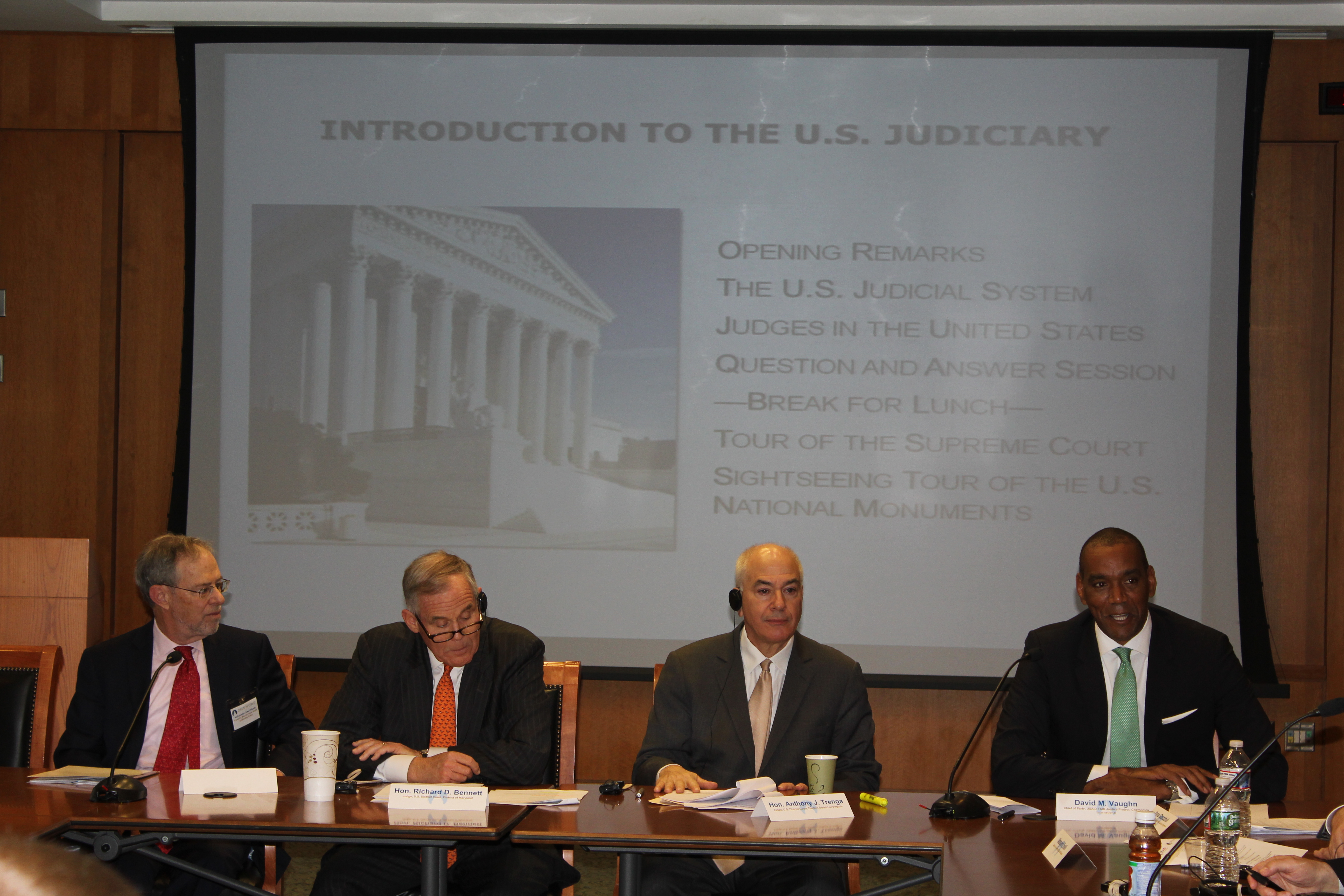 Члени Ради суддів України та працівники ДСА України в перші дні свого перебування в США мали можливість зустрітися з представниками Конгресу США (Головним радником сенатора США Орріна Хетча з Комітету Сенату з питань правосуддя Томасом Джиппінгом, Конгресменом від штату Меріленд Датчем Рупперсбергером, Сентаром штату Меріленд Беном Кардіном), Адміністративного офісу судів США (який є аналогом Державної судової адміністрації України), Верховного Суду США.