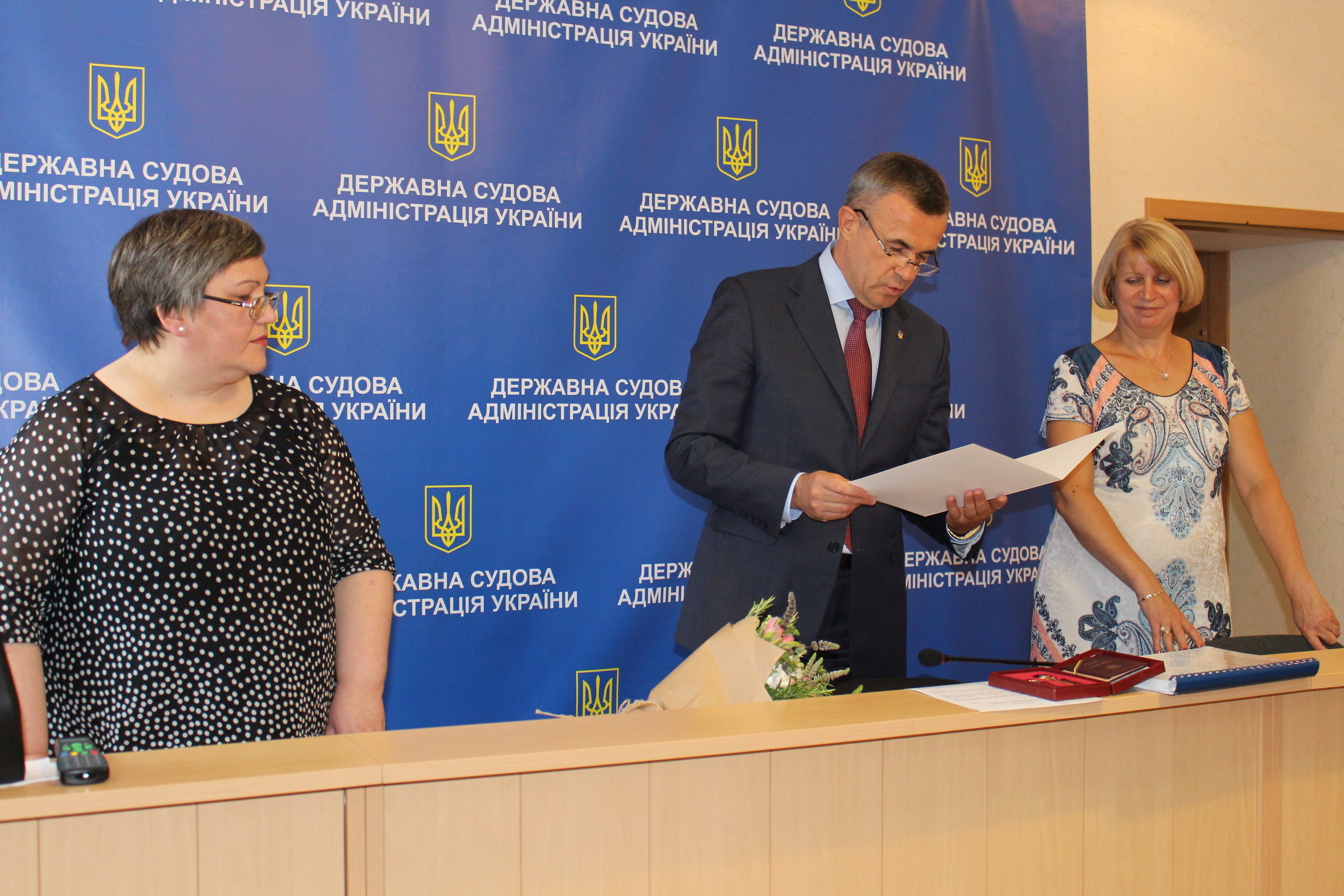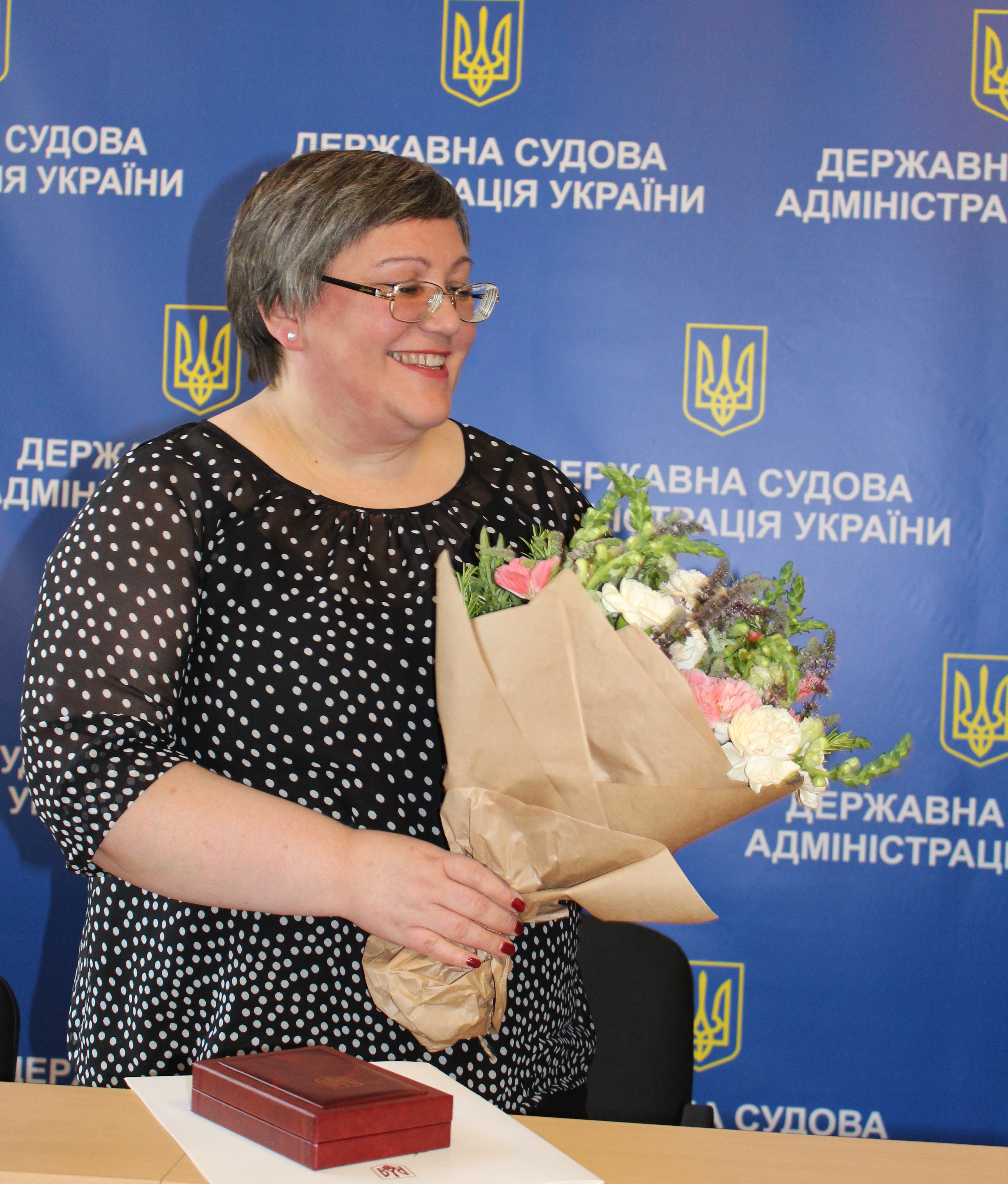 Голова Державної судової адміністрації України Зеновій Холоднюк за дорученням Президента України Петра Порошенка вручив державну нагороду України орден "За заслуги" ІІІ ступеня заступнику Голови Державної судової адміністрації України Ользі Булці.