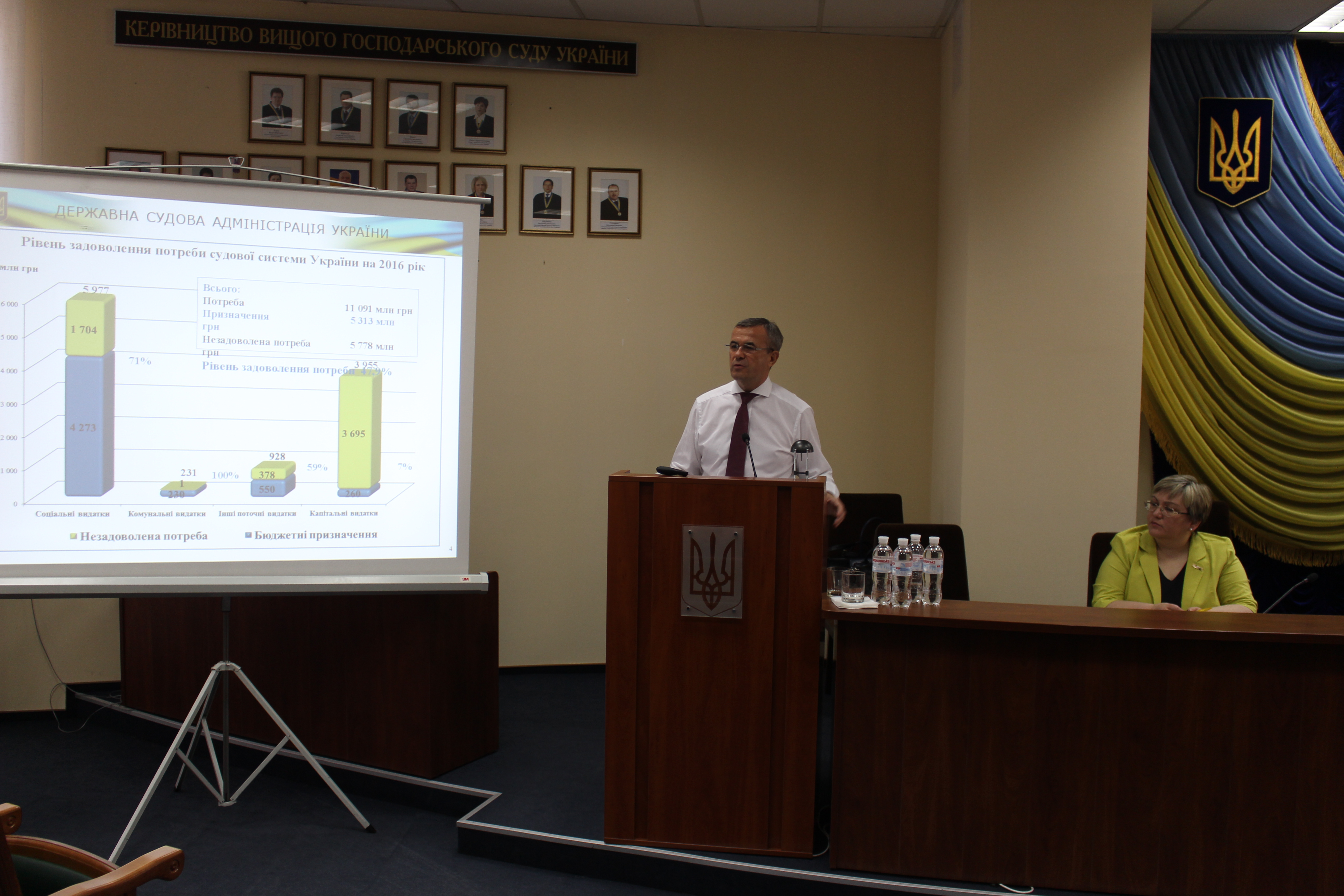 Щодо матеріально-технічного забезпечення судових установ приміщеннями, то очільник ДСА України зазначив, що цьогоріч на капітальні видатки заплановано 260 мільйонів гривень, що дозволить до кінця року завершити капітальний ремонт 10 місцевих загальних судів. Вже в’їхали в нові приміщення Центральний районний суд міста Миколаєва, Попільнянський районний суд Житомирської області, Глухівський міськрайонний суд, що на Сумщині.