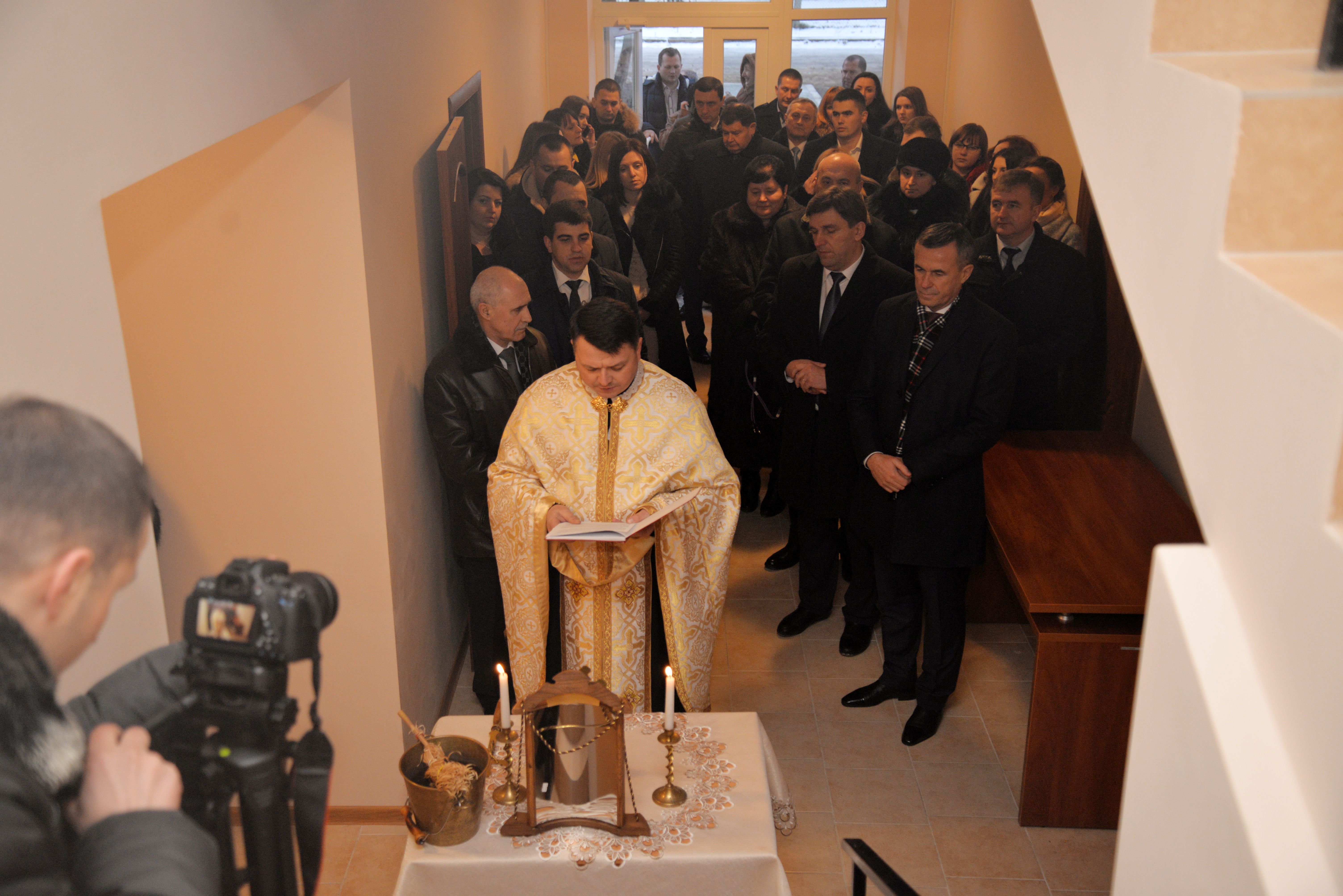 Після процедури перерізання стрічки відбулося освячення і благословення приміщення, потім – нарада з суддями апеляційних судів Львівщини, колективом територіального управління.