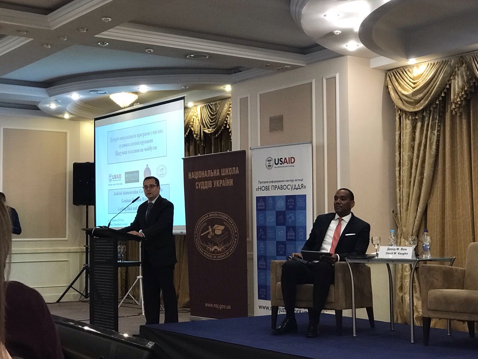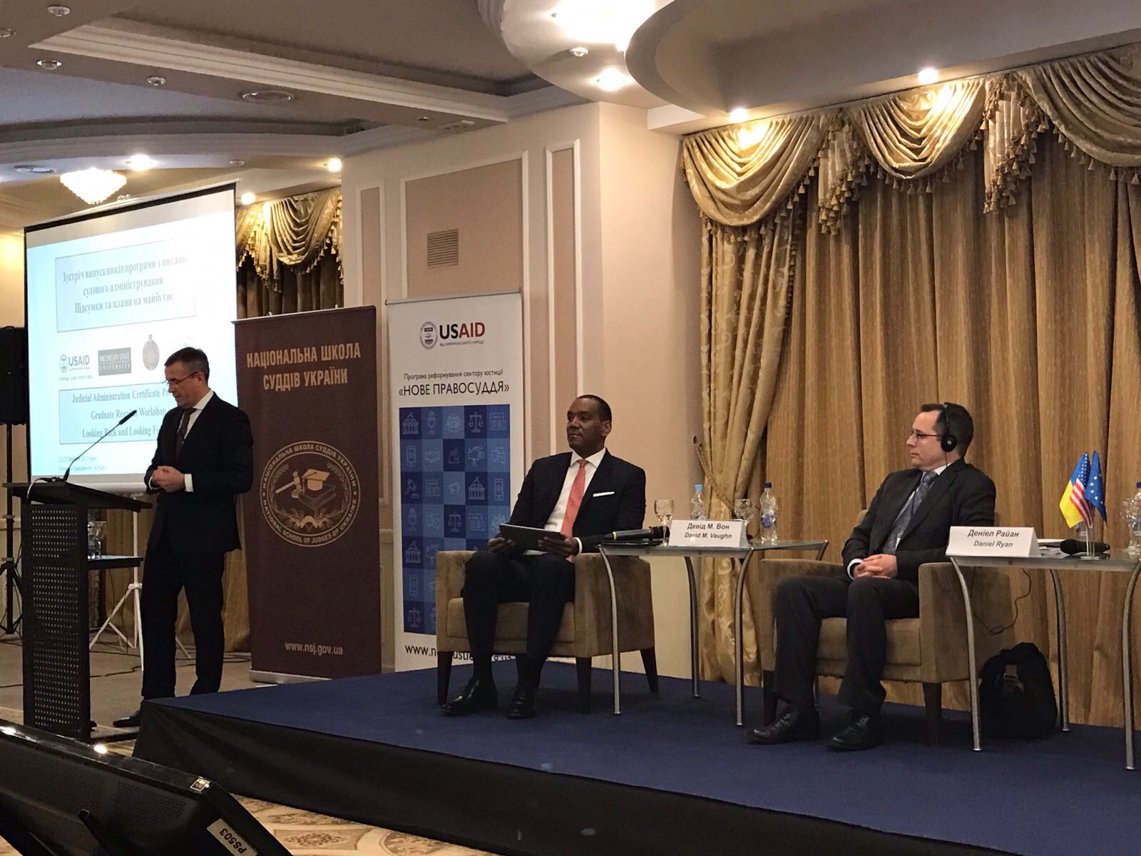 Довідково: Програма USAID "Нове правосуддя" зібрала разом випускників всіх трьох навчальних програм з питань судового адміністрування - 2013, 2015 та 2016 років. Програму було розроблено і запроваджено у співпраці з Державною судовою адміністрацією України та Національною школою суддів України за участі Університету штату Мічиган.