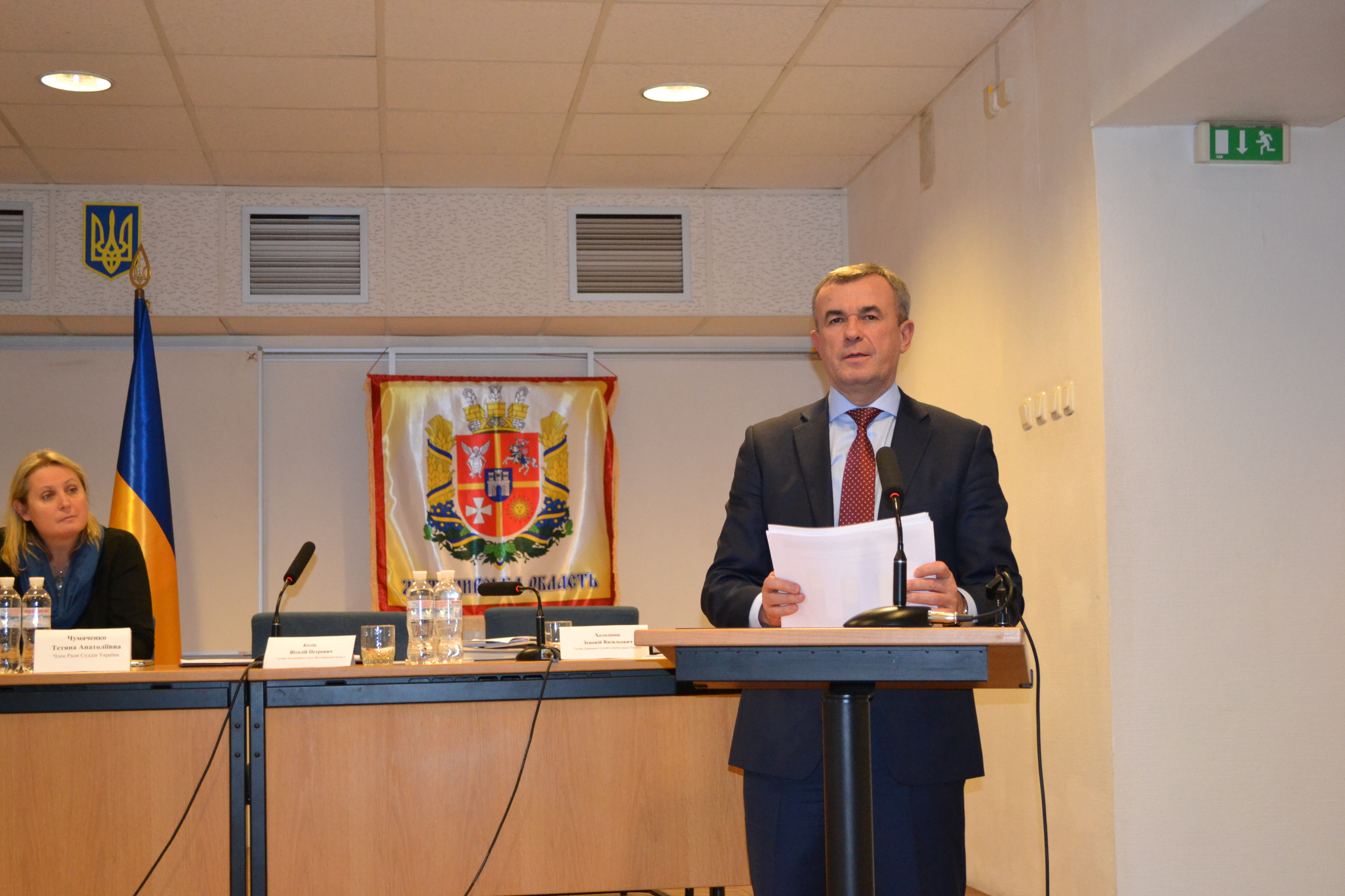 Голова Апеляційного суду Житомирської області Віталій Котік поінформував присутніх про стан здійснення судочинства судами Житомирської області в 2016 році.
