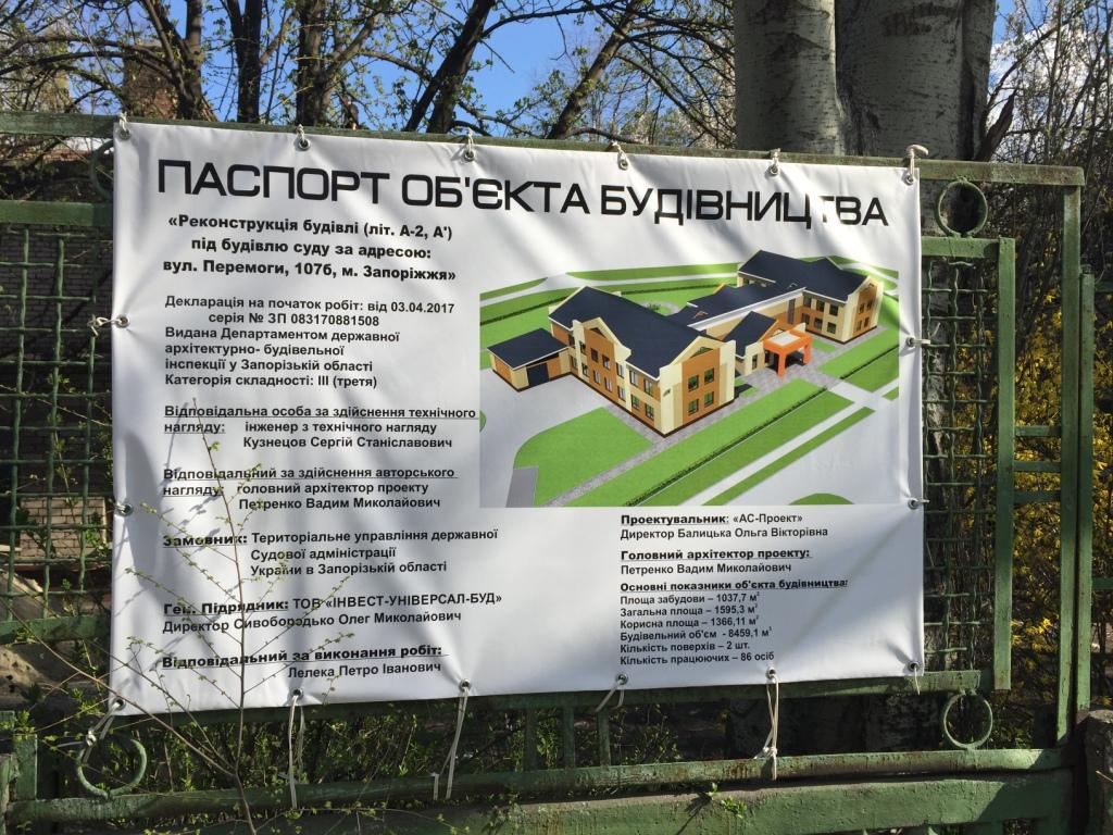 Нова будівля Приморського районного суду Запорізької області, загальною площею 915,6 кв. м отримана у ІІ кварталі 2015 року. Поточний ремонт приміщень тривав з листопада 2015 року по квітень 2017 року. Загальна вартість робіт 4 326 776,96 грн.