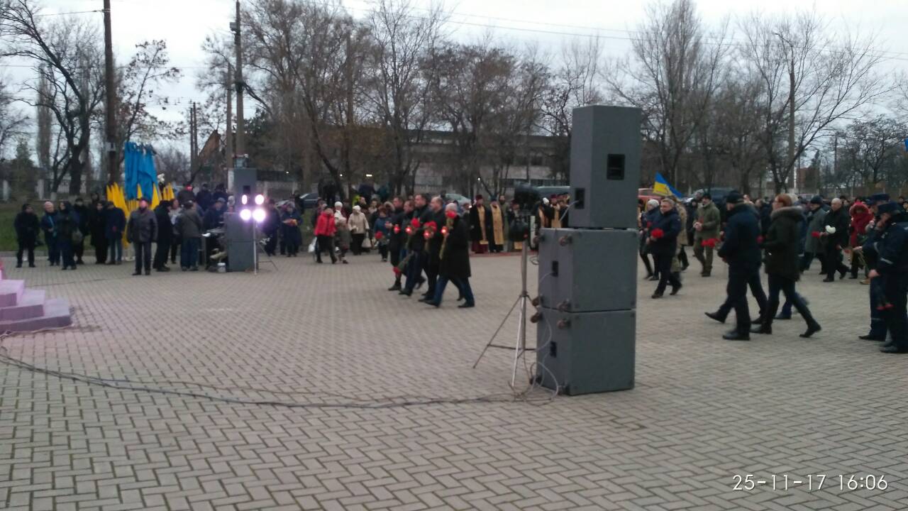 Біля меморіалу священики відправили молебень. Потім жертв голодомору вшанували хвилиною мовчання.