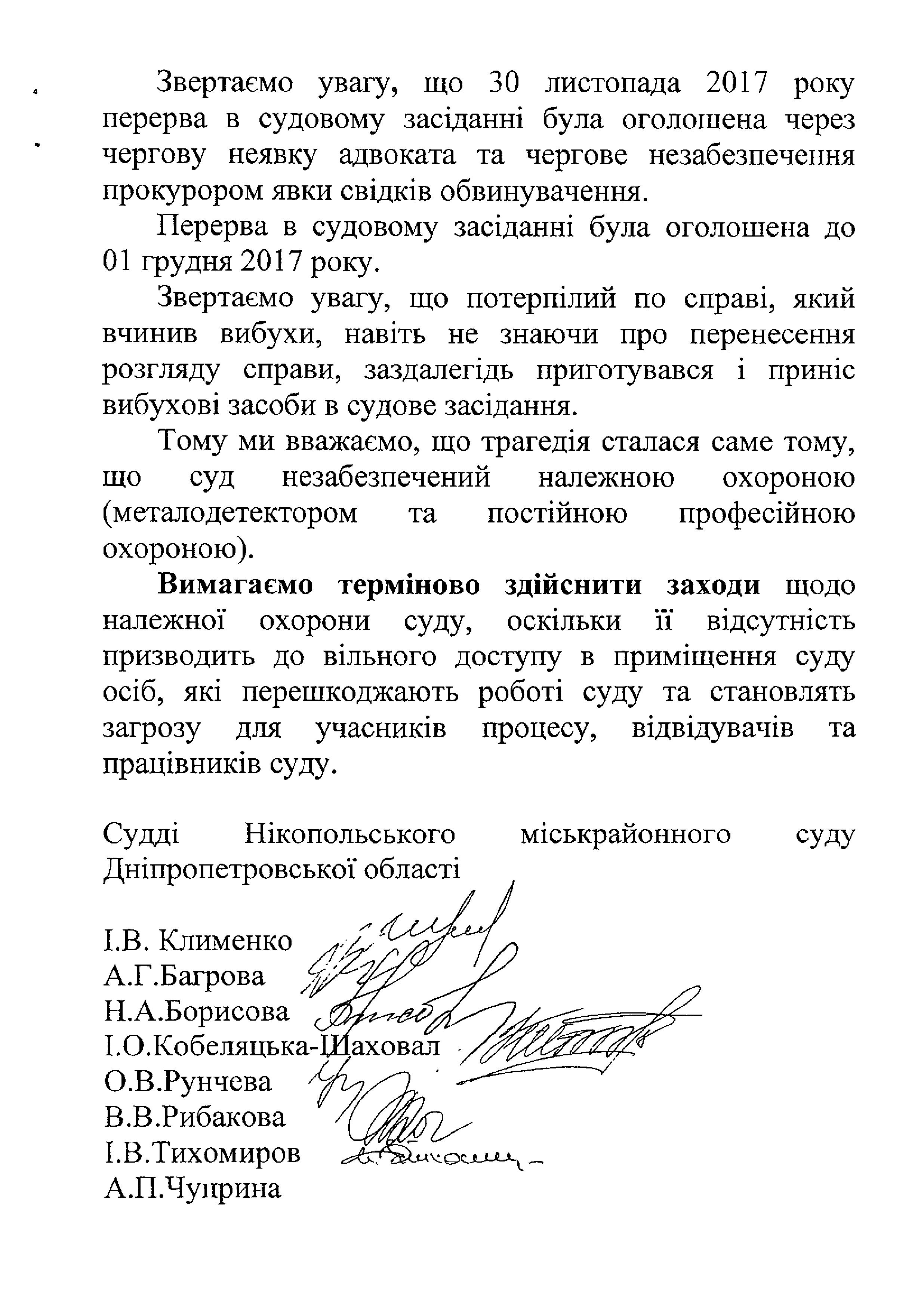 Звернення загальних зборів суддів Нікопольського міськрайонного суду Дніпропетровської області
