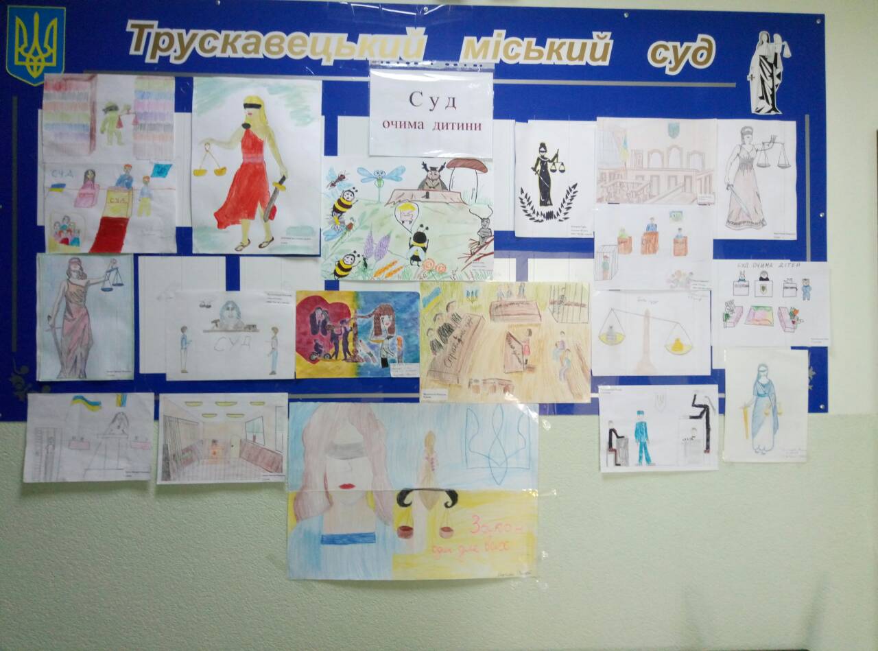 У Трускавецькому міському суді Львівської області наближається до завершення виставка дитячих малюнків «Суд очима дитини», що проводиться за ініціативою суду, а також активного сприяння голови суду Грицьківа Віталія Теофільовича та судді-спікера Василюк Тетяни Василівни в рамках відзначення Всеукраїнського тижня права. Такий захід проводиться з метою розвитку морально-етичних якостей у дітей, формування у молодшого покоління позитивного образу права як державного інституту, виховання почуття важливості прав дитини, сприяння самореалізації та творчому розвитку.