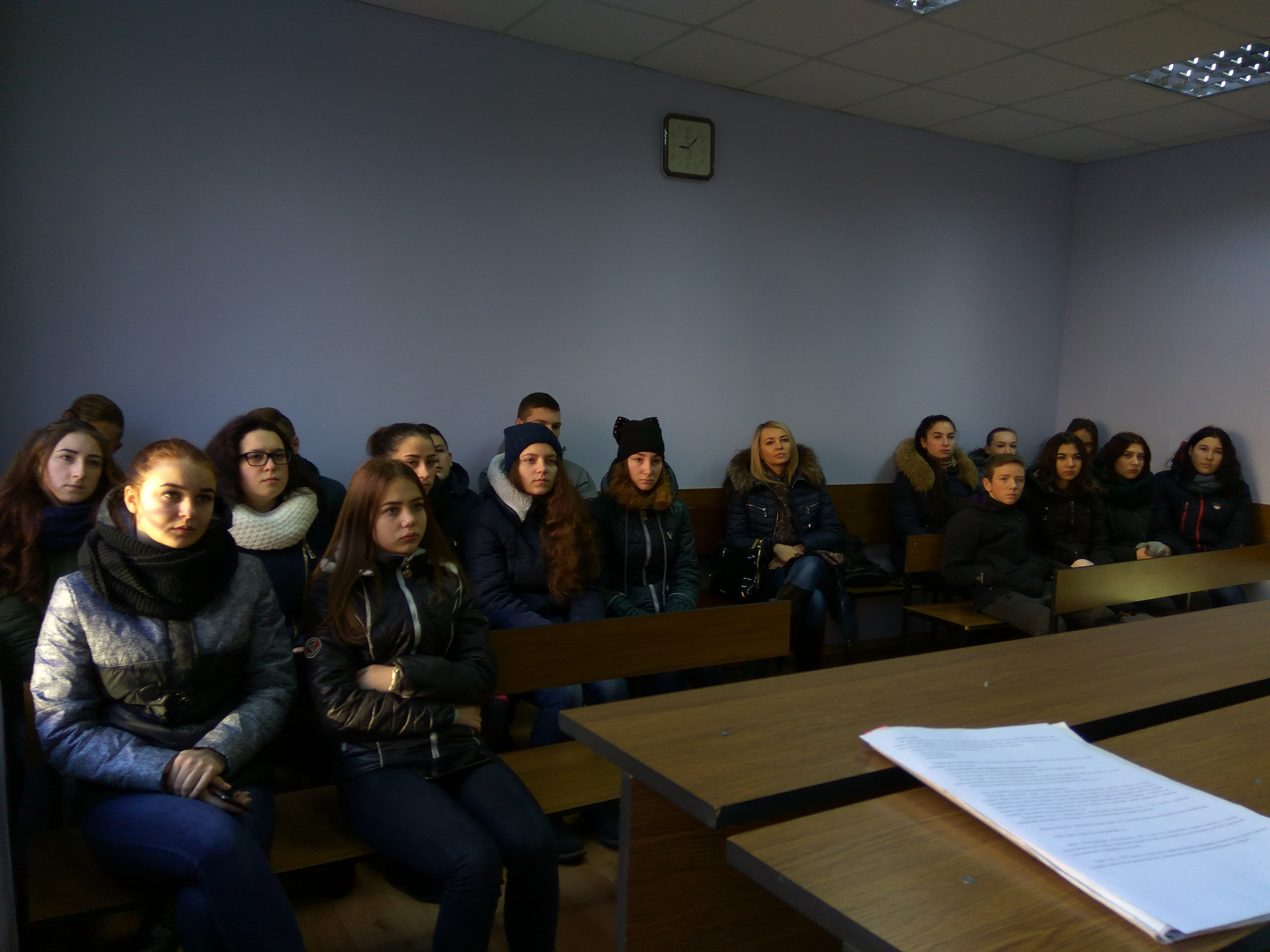 Даний захід розпочала прес-секретар суду Наталія Гаращук, яка розповіла учасникам заходу про систему судоустрою, про особливості роботи суду, специфіку роботи судді, категорію справ, які розглядає суд, особливості роботи секретаря судового засідання та помічника судді.