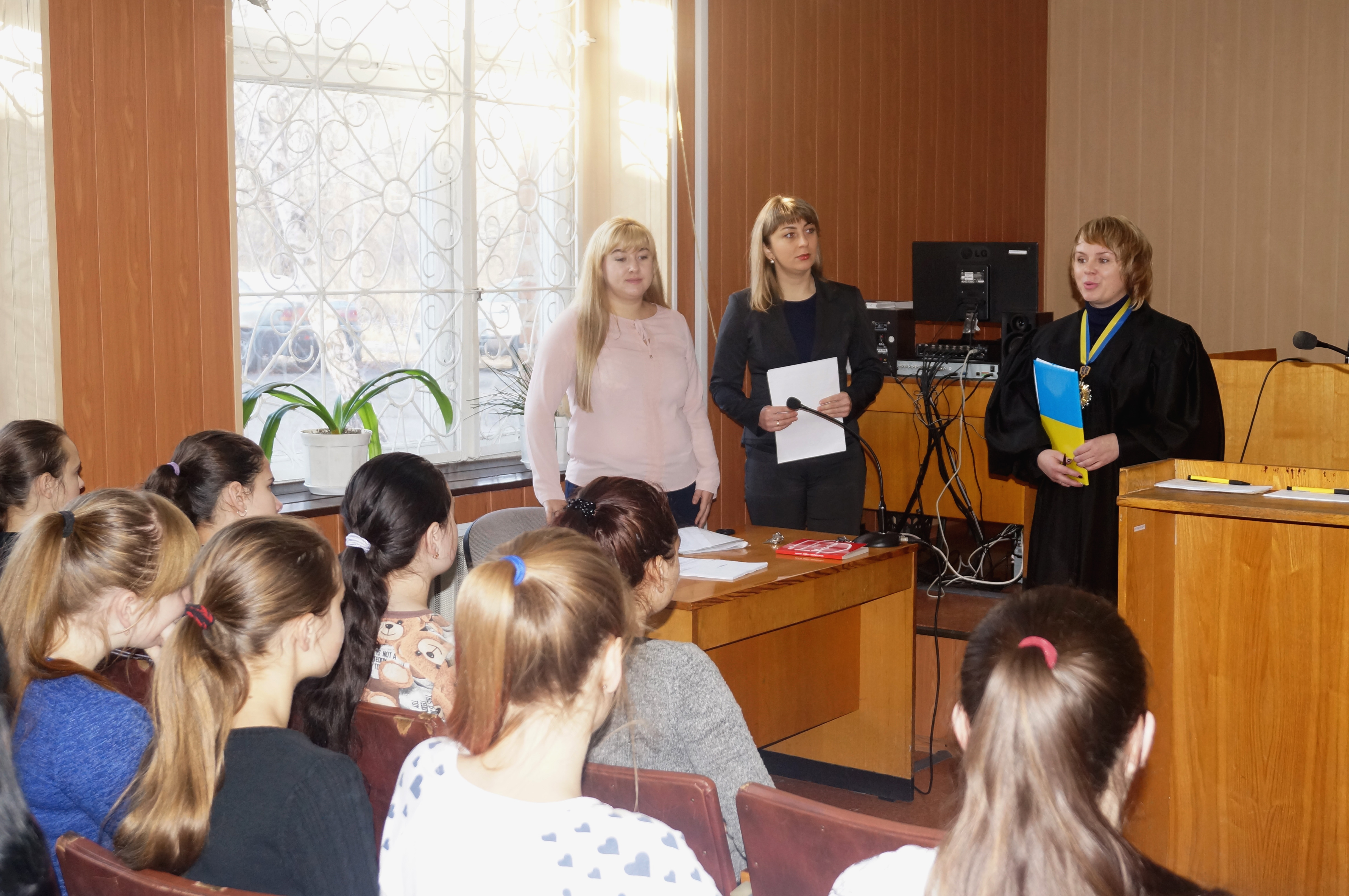 Помічник голови суду Наталія Олегівна Батюта розповіла школярам про роботу помічника судді, яка полягає в пошуку та підготовці необхідної інформації для підготовки розгляду справ та матеріалів, виконання доручень судді пов’язаних із розглядом судової справи, виготовленням запитів, інформаційних листів та підготовку проектів судових рішень.