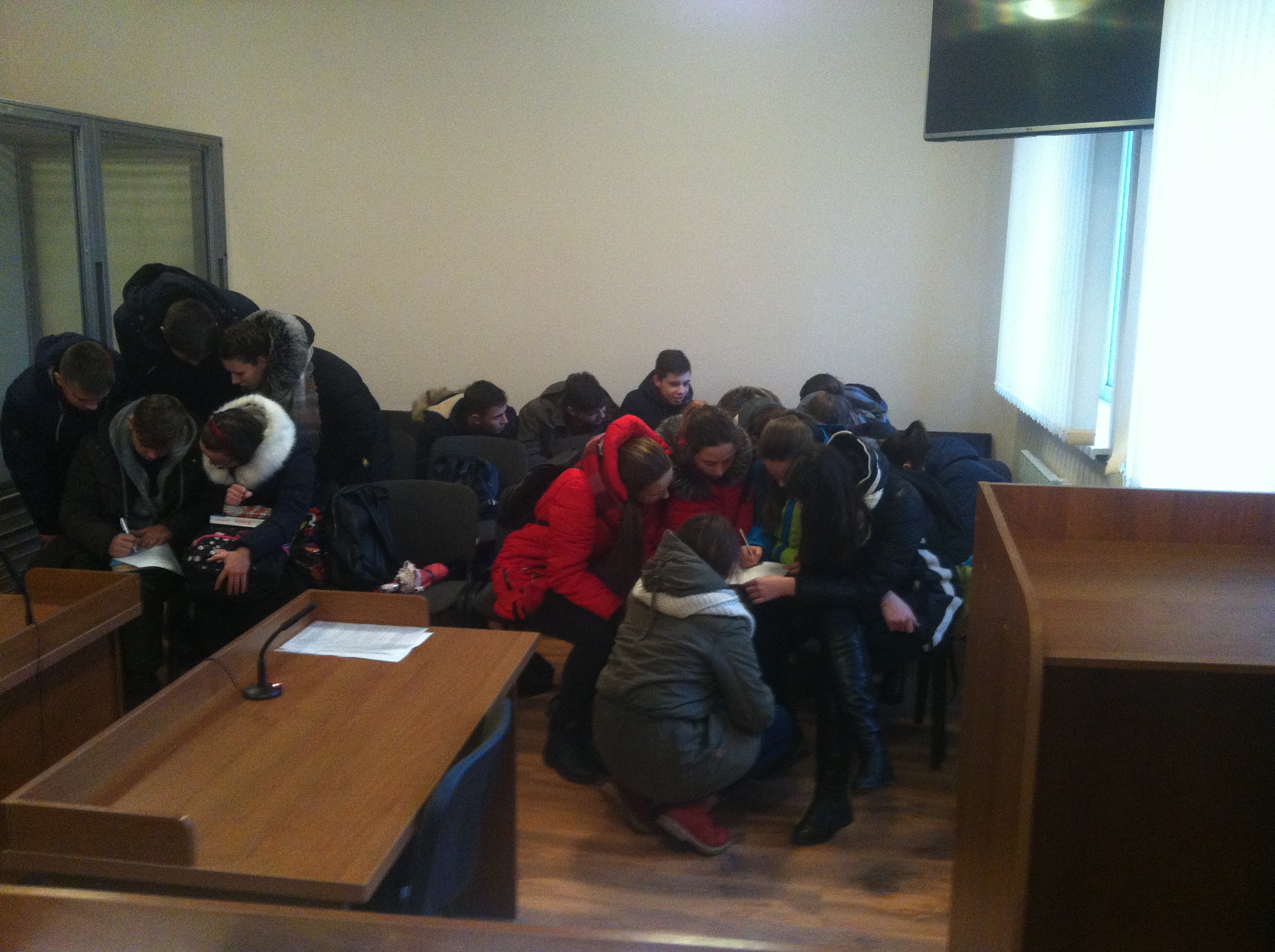 Учнів гімназії та їх вчителя Запотічну Н.Ф зустріли суддя спікер Карпин І.М., керівник апарату суду Грицан Д.Б та консультант суду Папірник Г.Я. В ході ознайомчої екскурсії приміщенням учні дізналися про специфіку роботи суду, порядок прийому та реєстрації вхідної кореспонденції .