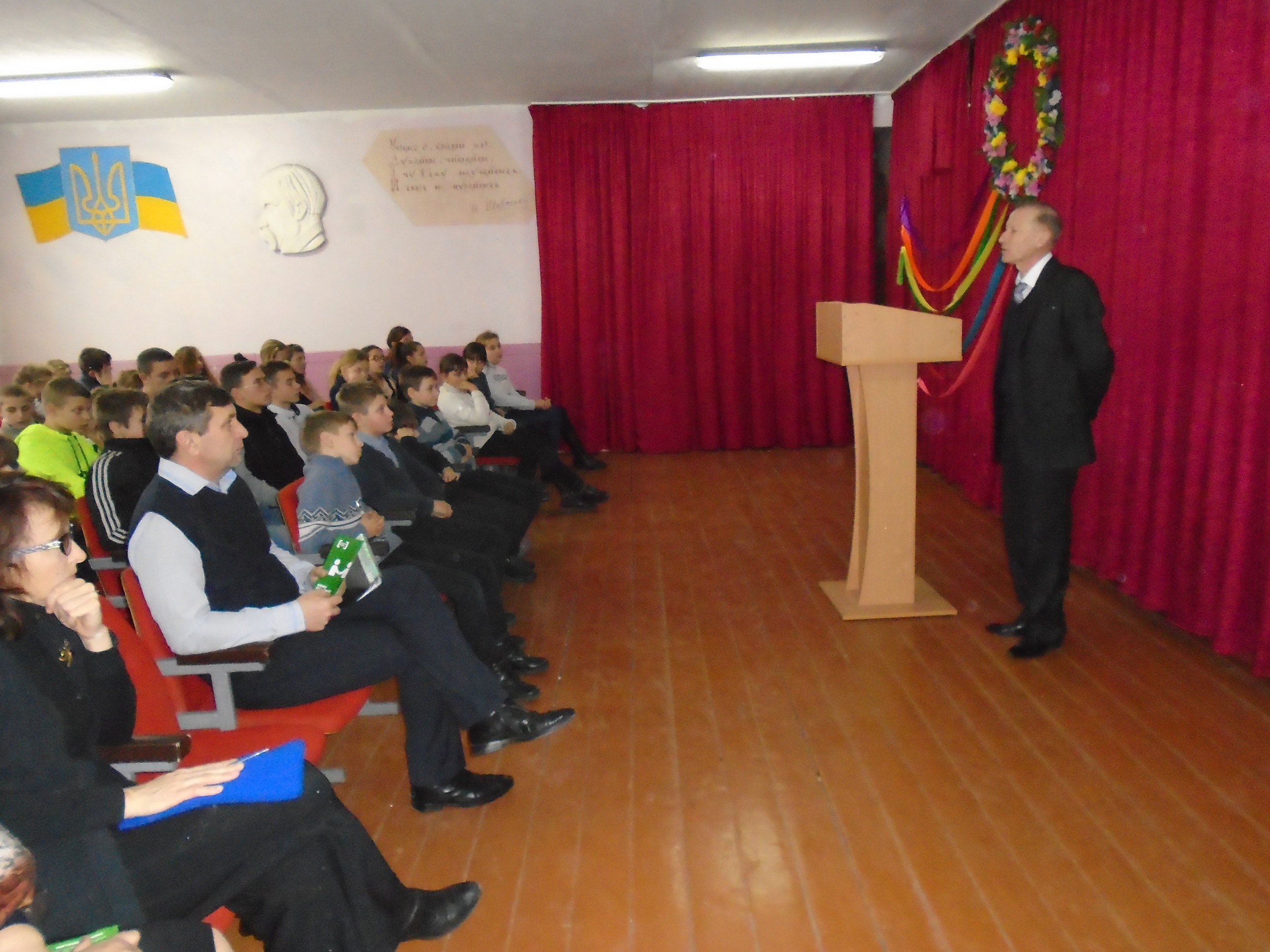 Голова суду Чхайло О. В. розповів учням про поширені злочини та правопорушення, які вчиняються неповнолітніми, про відповідальність та покарання , яке настає за їх вчинення. Крім того, звернув увагу присутніх на недопущення порушення правил дорожнього руху та наслідки їх порушення.