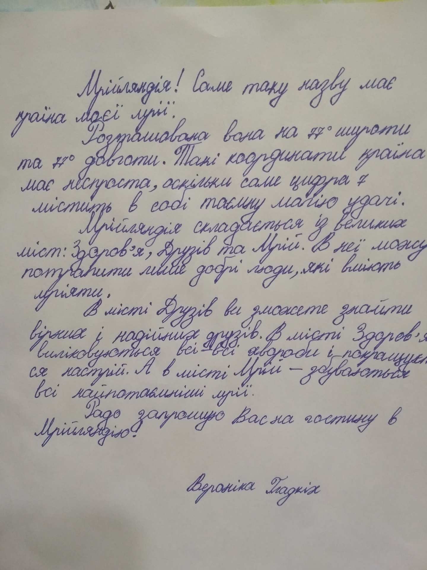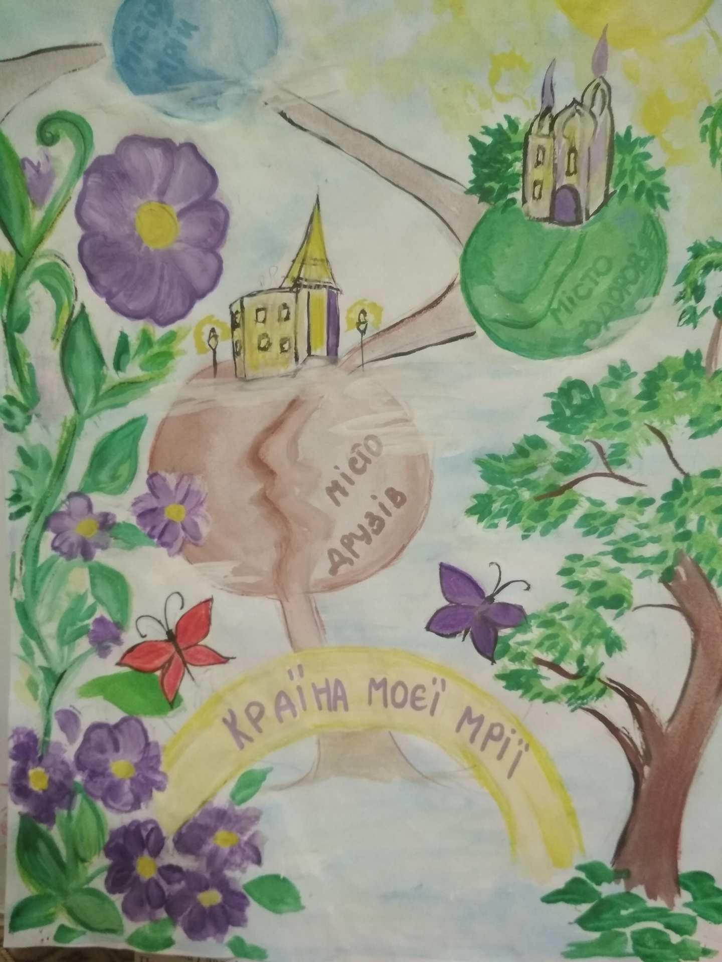 Більшість дітей у своїх варіаціях на тему омріяної країни використовували синьо-жовті кольори, зображуючи Україну.
