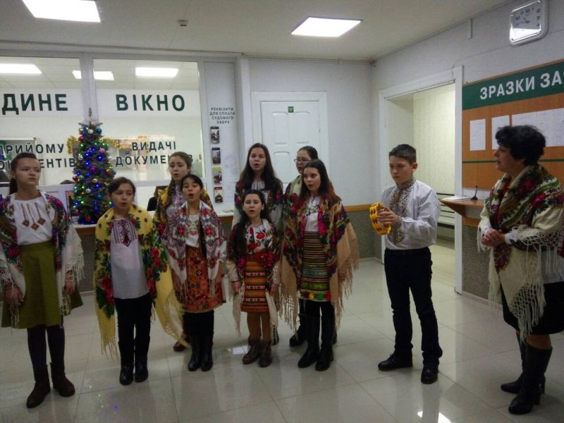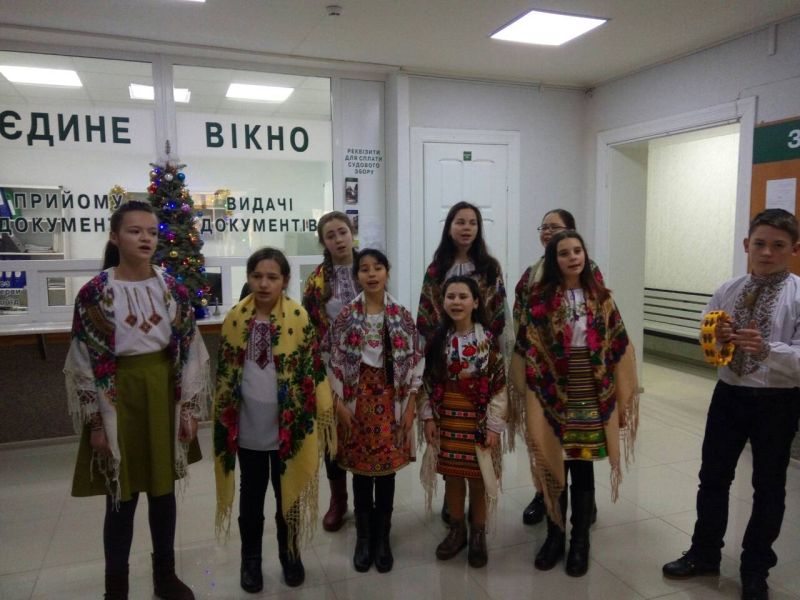 До Городенківського районного суду з колядками та віншуваннями завітали учні дитячої музичної школи
