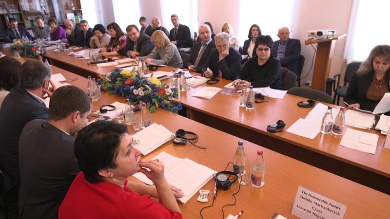 Своїм досвідом із керівниками та суддями Апеляційного та місцевих судів Хмельниччини діляться Тетяна Чумаченко, голова Комітету етики, врегулювання конфлікту інтересів та професійного розвитку суддів ради суддів України та Вікторія Чебан, член Комітету, суддя з Чернівець. Про сам Проект підтримки судової реформи та сучасний етап його реалізації присутнім розповів його керівник Ігор Осика, Примітно, що з ґрунтовною презентацією на тему «Врегулювання конфлікту інтересів суддями в Канаді» перед слухачами виступив Тед Скенлен, суддя Апеляційного суду провінції Нова Шотландія Канади. Активним модератором та консультантом на зустрічі був Дональд Чіасон, директор з правових та навчальних питань групи міжнародного співробітництва Національного суддівського інституту Канади.