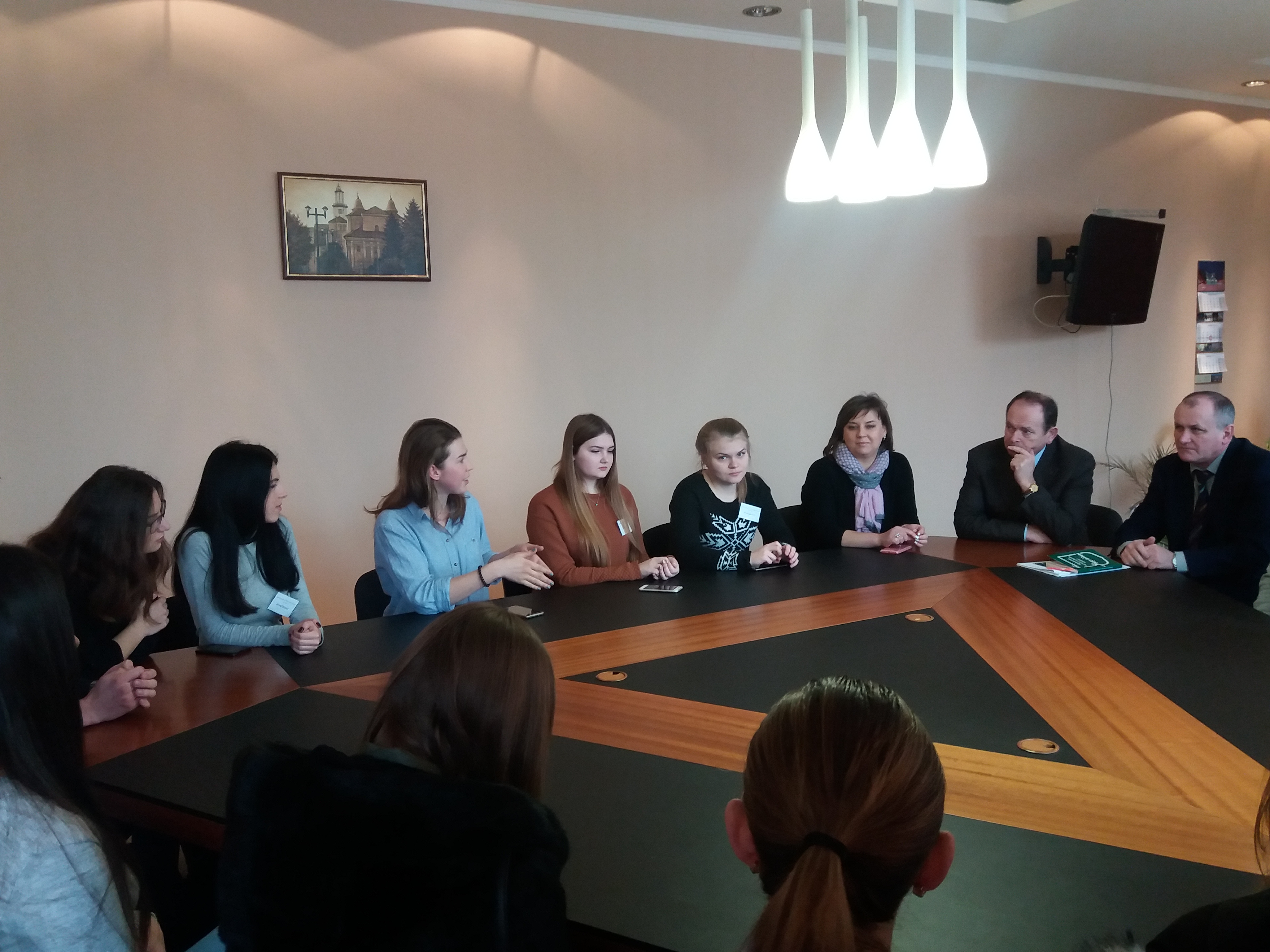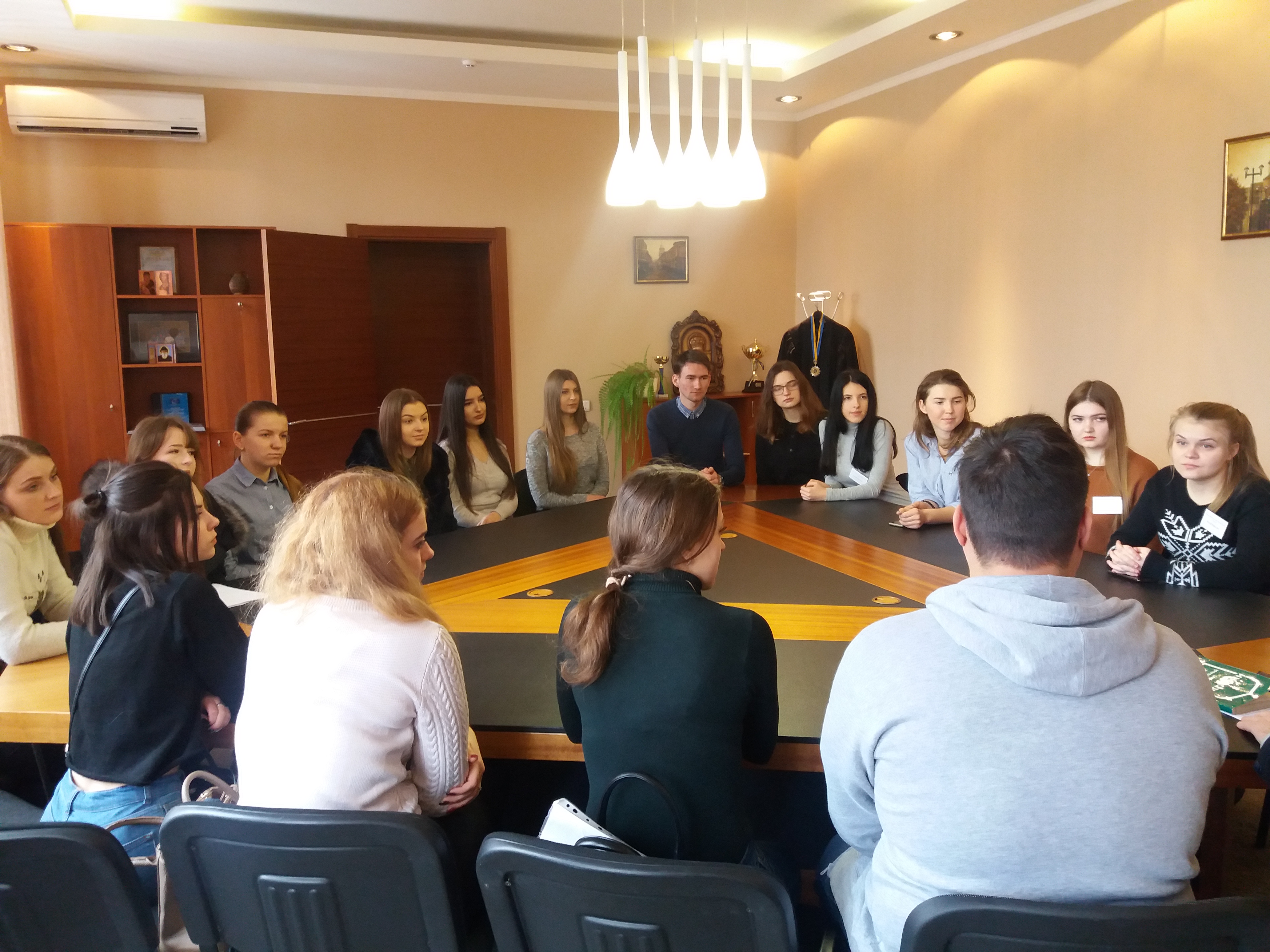 21 лютого голова суду Богдан Гриновецький, заступник голови суду Віталій Девляшевський та керівник апарату суду Оксана Розвадовська спілкувались з практикантами. Бесіда була дуже цікава та тривала більше години. Студенти активно ділились враженнями від побаченого та задавали запитання. Їх цікавили питання про роботу суду, перебіг судової реформи, ставлення суспільства до суддівської роботи та емоції судді підчас розгляду справи та прийняття рішення.