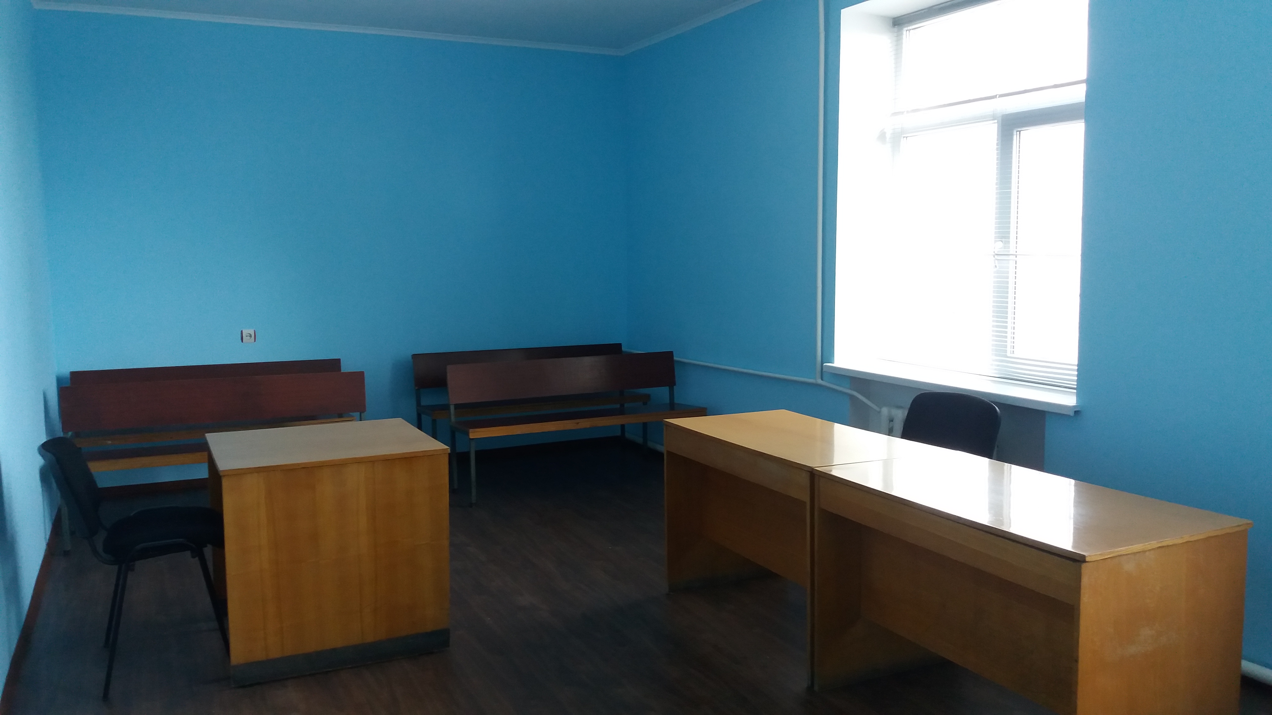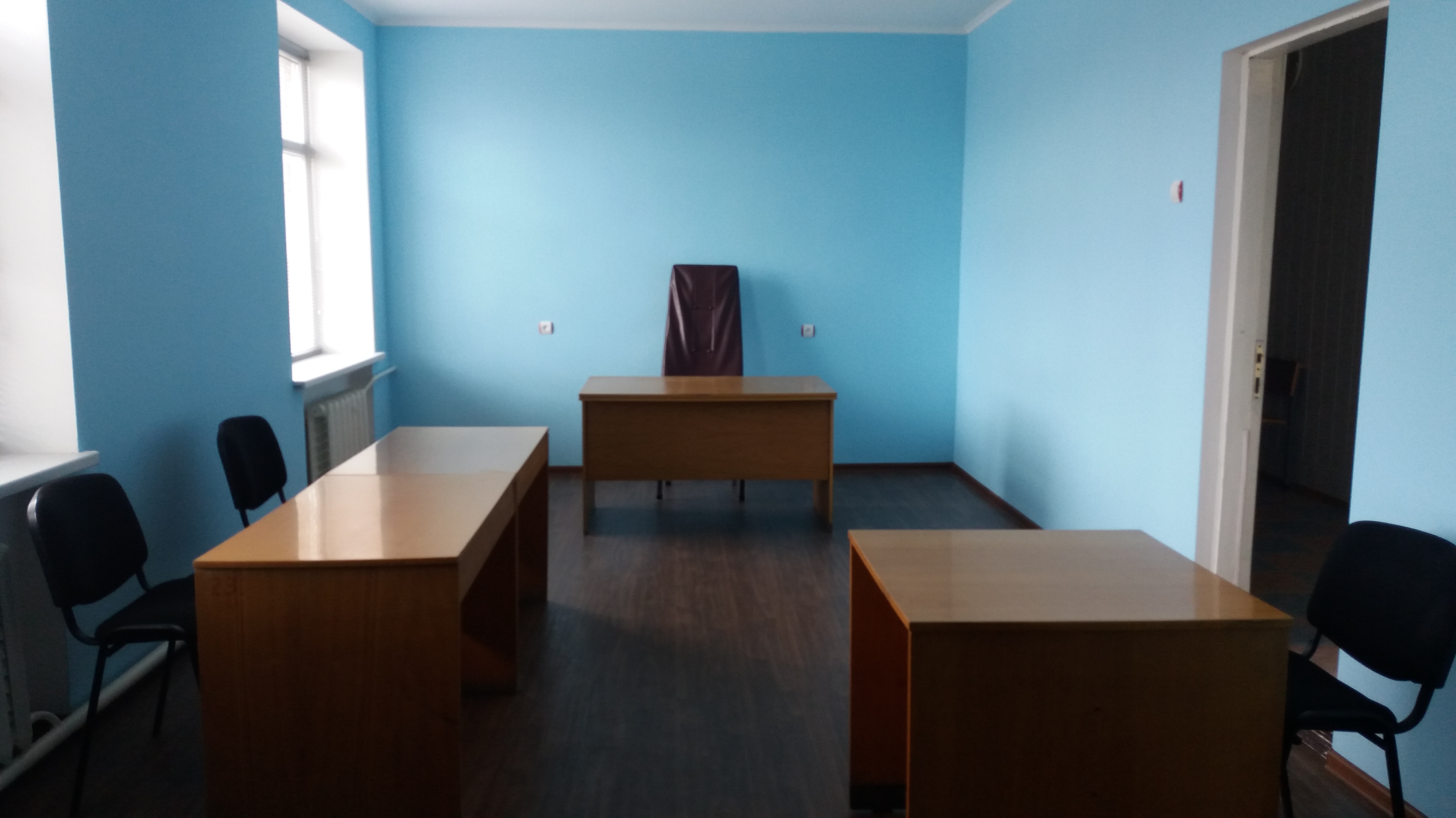 В результаті проведених робіт на першому поверсі обладнано ще один зал судових засідань та кабінет, який на сьогоднішній день пристосовано, як приміщення для зберігання товарно-матеріальних цінностей.