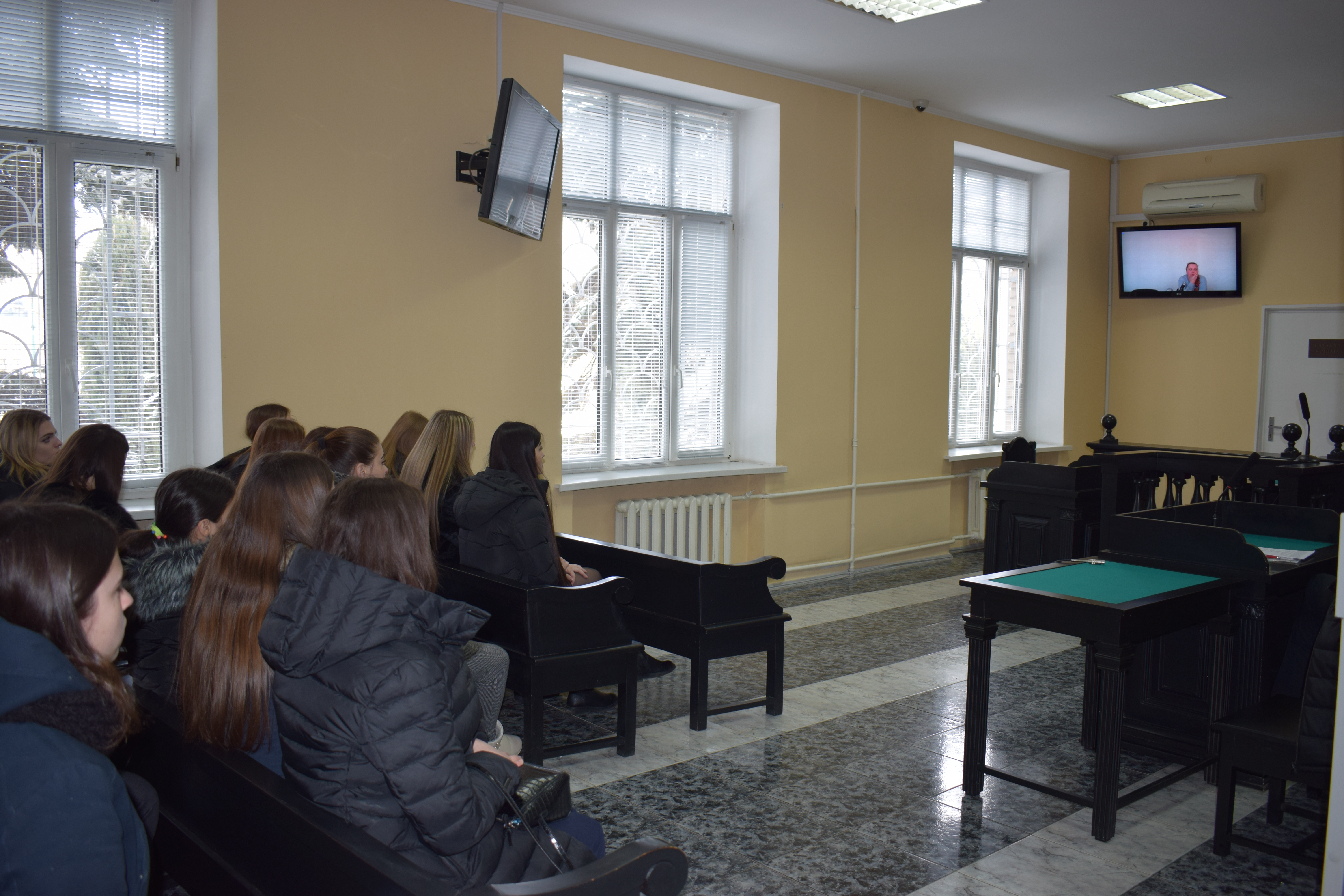 Надалі, студенти мали можливість спостерігати за судовим процесом у цивільній справі в режимі відеоконференції з одним із місцевих судів Херсонської області.