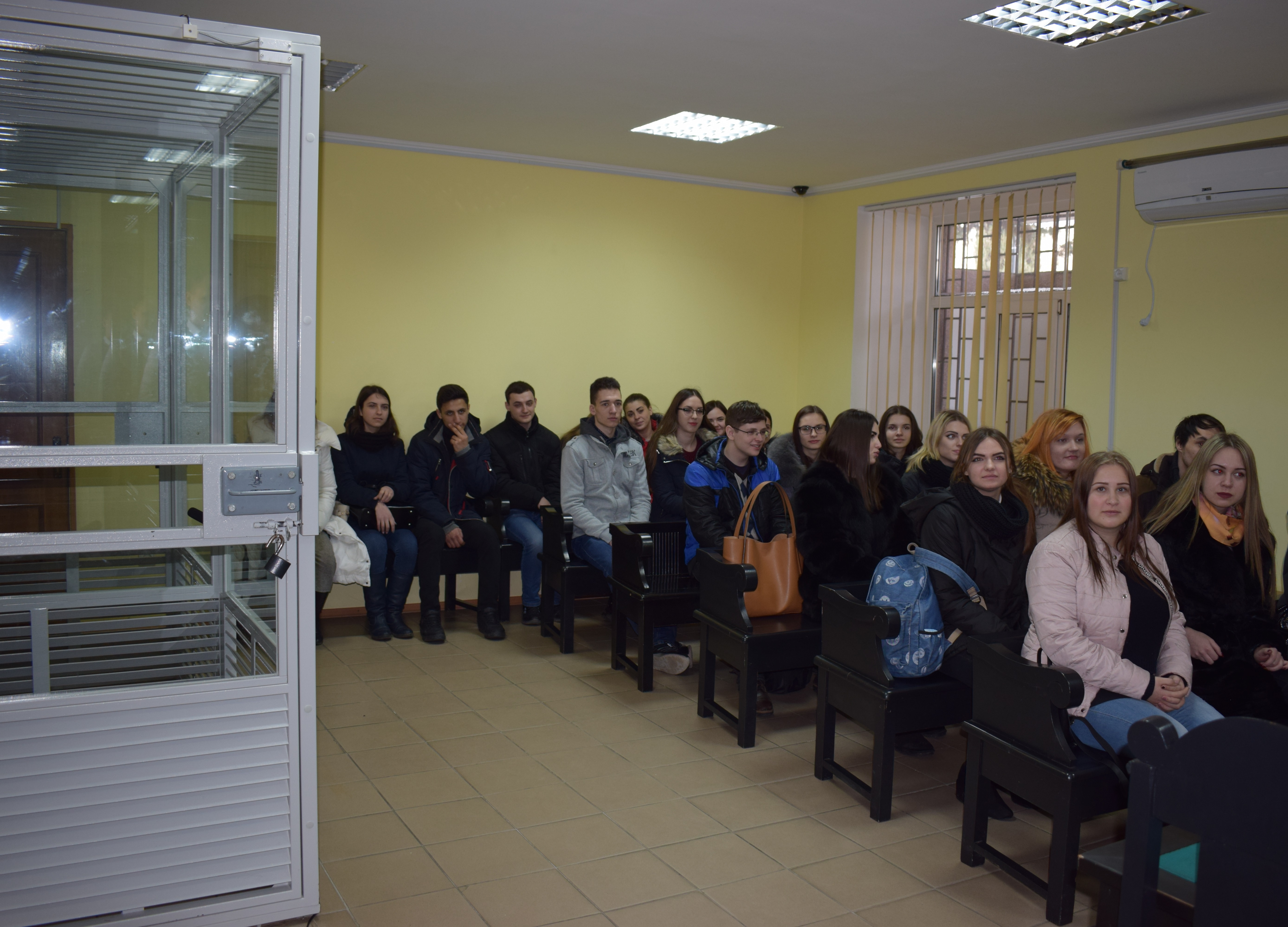 Оглядаючи зали судових засідань для розгляду кримінальних справ, майбутні правники із задоволенням побували в ролі судді, інших учасників процесу та зробили фото на згадку. Також гостей вразили своєю атмосферою караульні приміщення, де в очікуванні судових засідань перебувають особи, які тримаються під вартою.