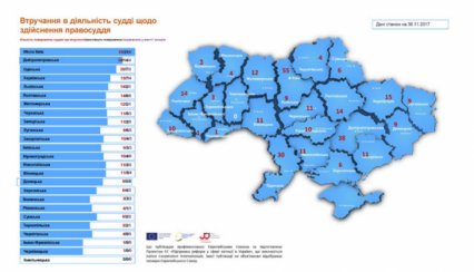 Вища рада правосуддя на своєму офіційному веб-сайті оприлюднила інтерактивну карту повідомлень суддів про втручання в діяльність щодо здійснення правосуддя.