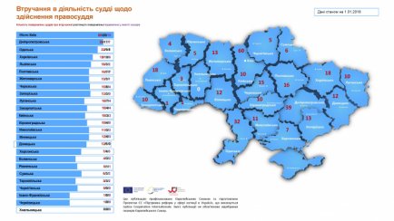 У 2017 році найбільша кількість повідомлень про втручання у діяльність судді щодо здійснення правосуддя надійшла від суддів Одеської (32), Дніпропетровської (39) областей та міста Києва (60).