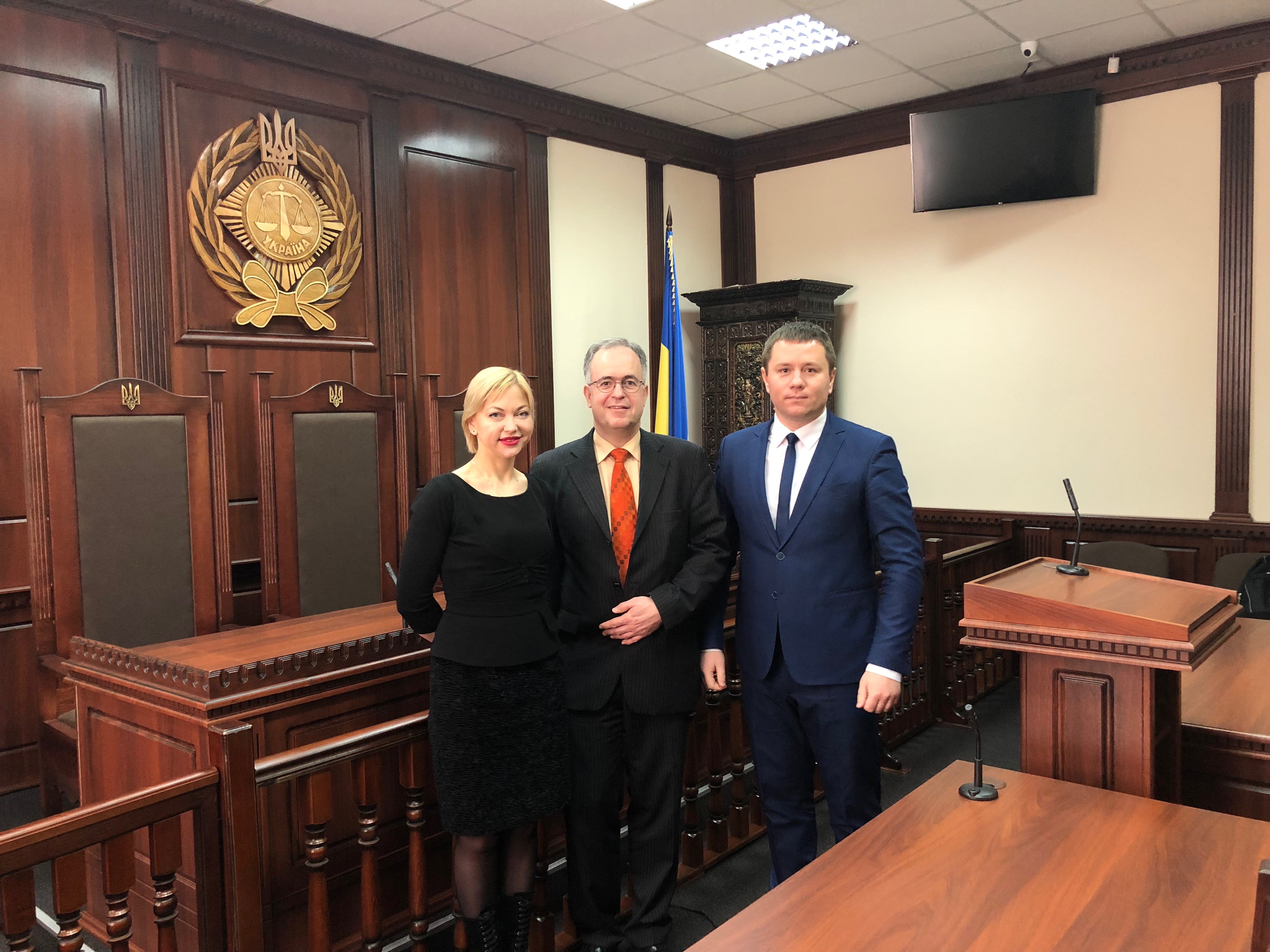 В рамках дружнього візиту професор завітав до Голови суду Желіка Бориса Євграфовича, оглянув приміщення суду та зали судових засідань, ознайомився з функціями і специфікою роботи суду, розкрив суддям та працівникам апарату особливості розгляду справ про банкрутство в Німеччині.