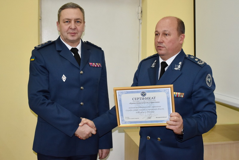 Друге місце за підсумками діяльності у 2019 році посіло Територіальне управління Служби у Харківській області, третє - Територіальне управління Служби у Івано-Франківській області. Начальники цих територіальних підрозділів полковники Служби судової охорони Андрій Марущенко та Андрій Маланій отримали від Голови Служби відповідні сертифікати.