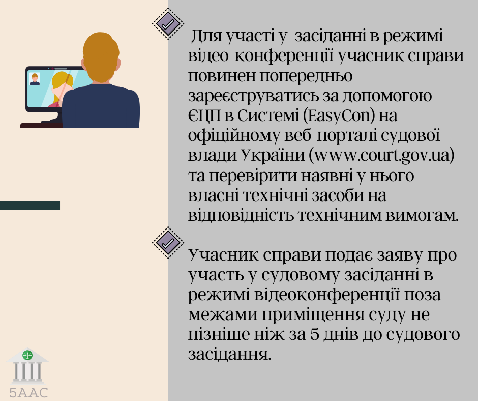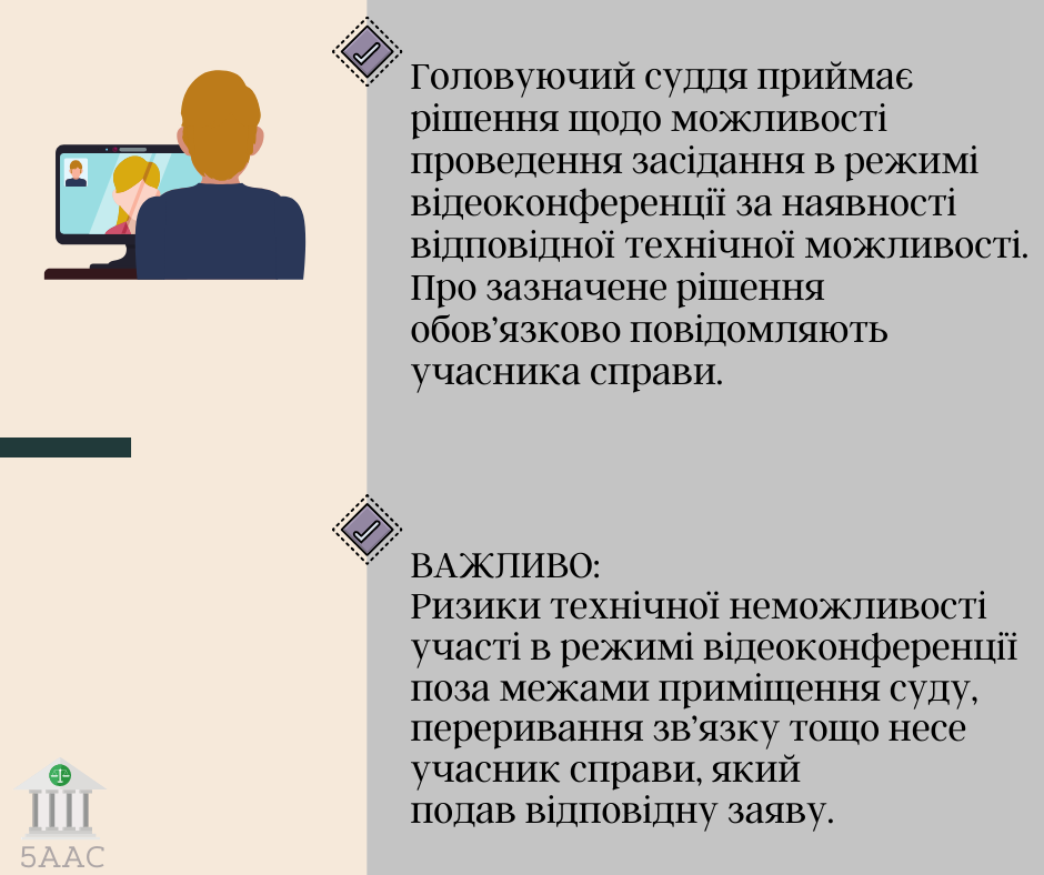 На виконання Закону України "Про внесення змін до деяких законодавчих актів України, спрямованих на забезпечення додаткових соціальних та економічних гарантій у зв’язку з поширенням коронавірусної хвороби (COVID-19)", відповідно до пункту 10 частини першої статті 152, частини п’ятої статті 153 Закону України "Про судоустрій і статус судів", затверджено Порядок роботи з технічними засобами відеоконференцзв’язку під час судового засідання в адміністративному, цивільному та господарському процесах за участі сторін поза межами приміщення суду.