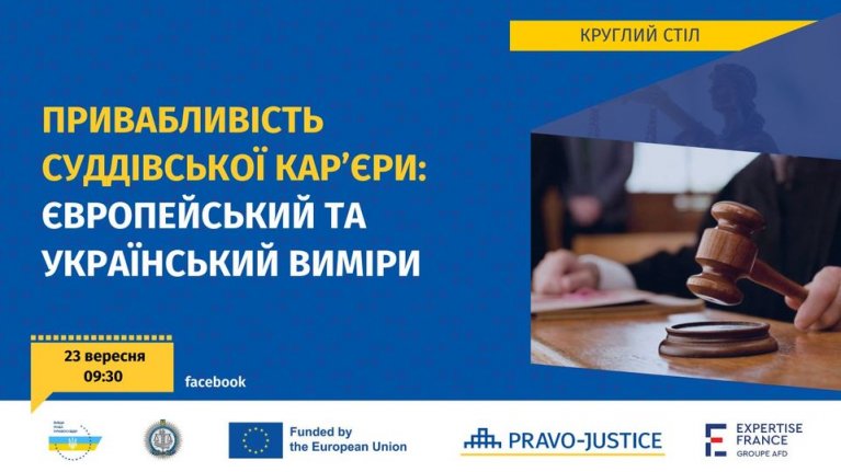 23 вересня 2024 року Вища рада правосуддя, Вища кваліфікаційна комісія суддів України та Проєкт ЄС "Право-Justice" проведуть круглий стіл на тему: "Привабливість суддівської кар'єри: європейський та український виміри".