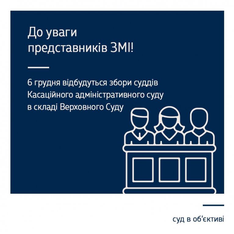 6 грудня 2017 року о 10:00 відбудуться збори суддів Касаційного адміністративного суду в складі Верховного Суду.